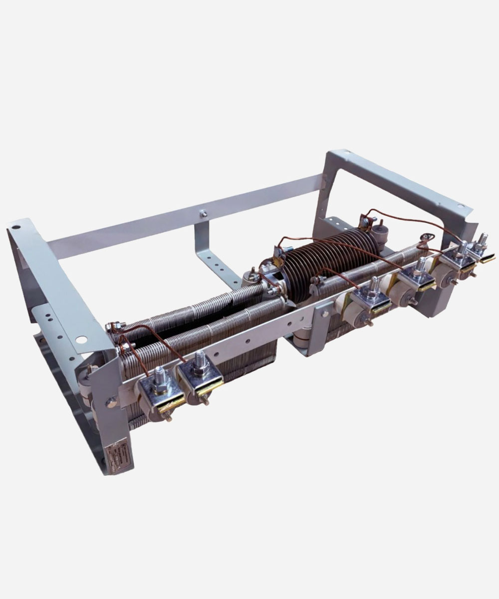 - Резистор состоит из стальной пластины-держателя с насаженными на нее фарфоровыми ребристыми изоляторами. В канавках изолятора укладывается навитая в спираль фехралевая лента, к которой припаяны концевые и промежуточные контактные отводы.