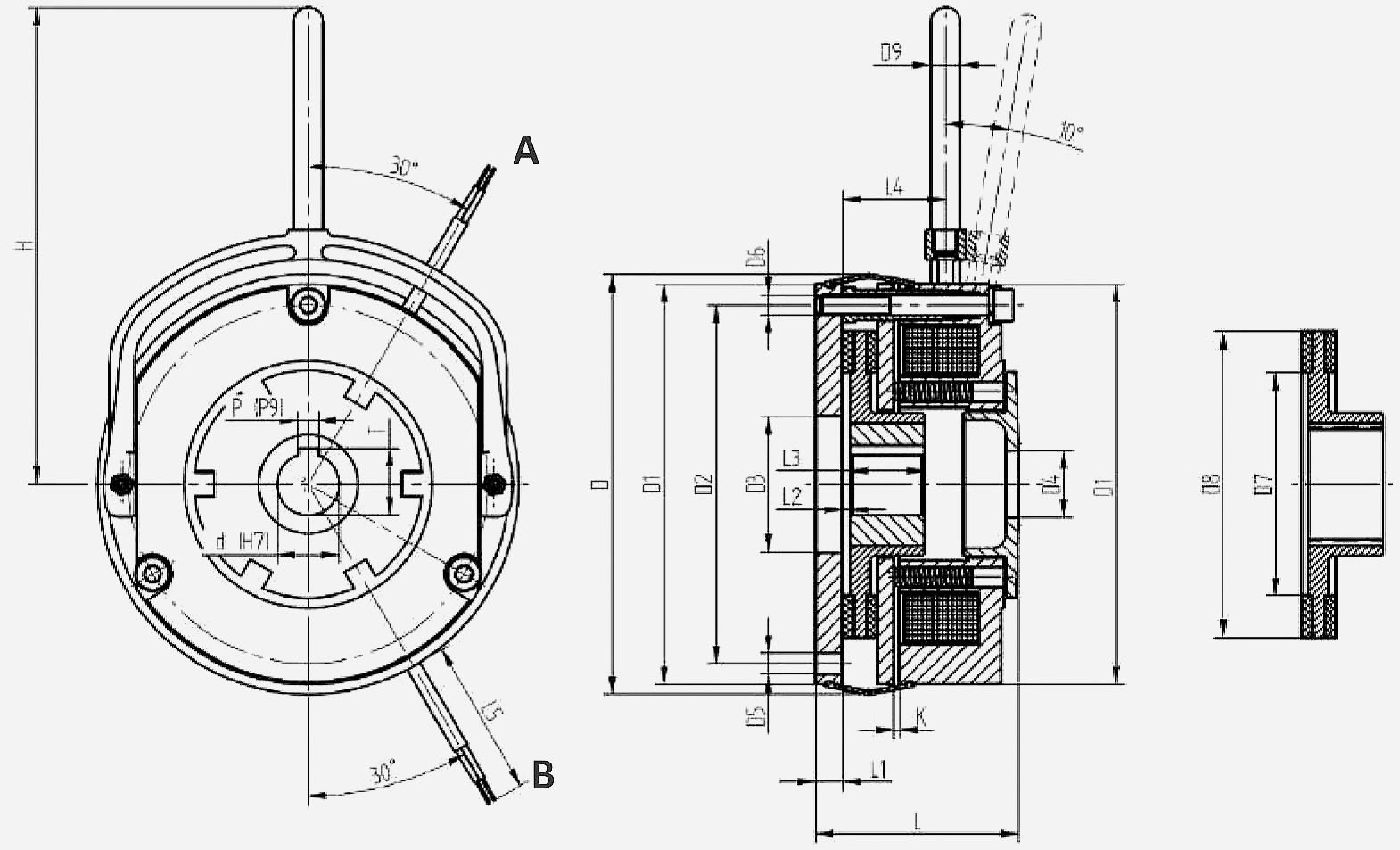 | Тип | Mh [Nm] | D | D1 | D2 | D3 | D4 | D5 | D6 | D7 | D8 | D9 | L | L1 | L2 | L3 | L4 | L5 | L6 | K | H | H1 |