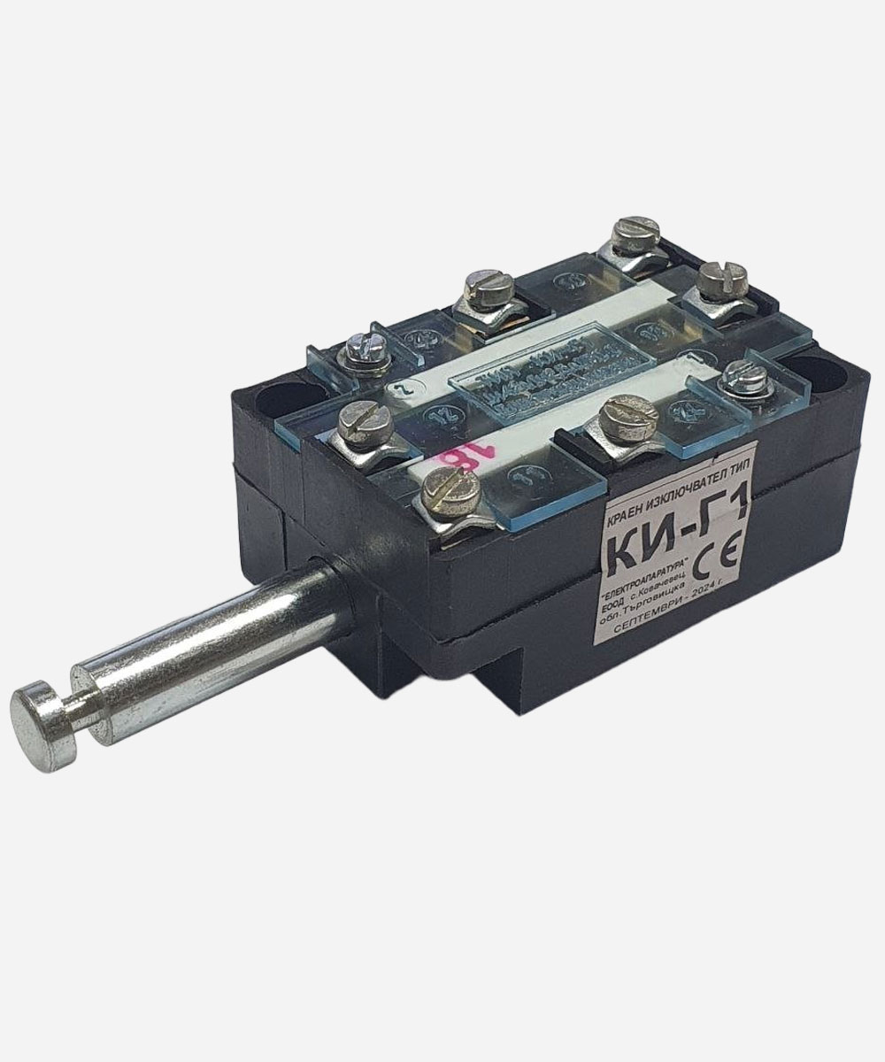 Оборудование такой категории предназначается для ограничения крайнего положения различных типов грузов. Данный механизм блокирует движение подъемного оборудования по 2 направлениям. Блокировка движения в крайних точках производится как при спуске, так и при подъеме грузов. Положение для остановки подъемного механизма обусловлено особенностями монтажа ограничительных колец на штангах, которые необходимы для запуска механизма концевого выключателя. Ключевой особенностью моделей КИ-Г1 и КИГ-1 является материал изготовления. Данные выключатели выполнены из огнестойкой пожаробезопасной пластмассы, которая способна выдержать предельную температуру до +300 градусов Цельсия. Напряжение Uh - 42V, ток Ih - 2,5A, степень защиты IP - 00.