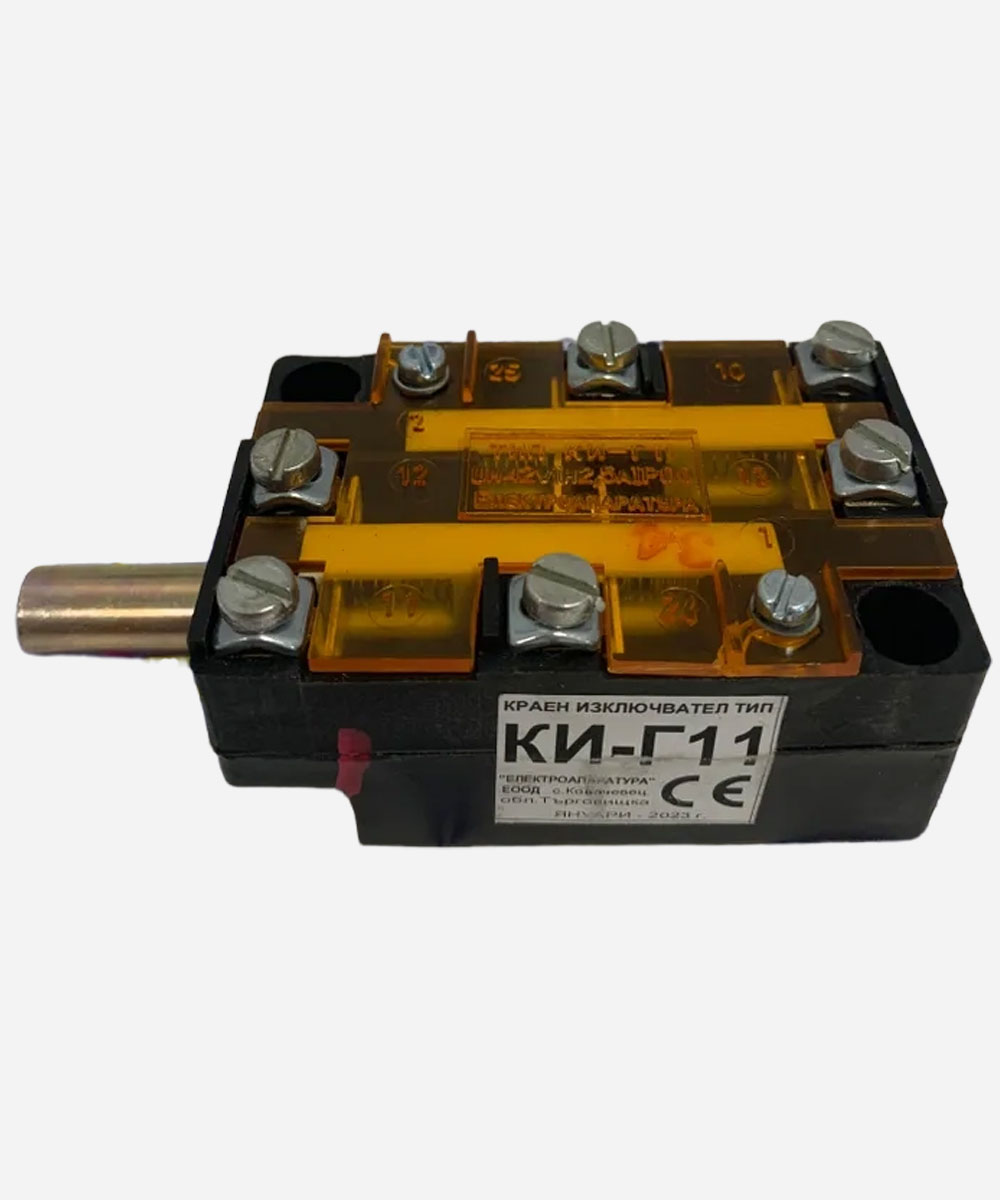 Оборудование такой категории предназначается для ограничения крайнего положения различных типов грузов. Данный механизм блокирует движение подъемного оборудования по 2 направлениям. Блокировка движения в крайних точках производится как при спуске, так и при подъеме грузов. Положение для остановки подъемного механизма обусловлено особенностями монтажа ограничительных колец на штангах, которые необходимы для запуска механизма концевого выключателя. Ключевой особенностью моделей КИ-Г11 и КИГ-11 является материал изготовления. Данные выключатели выполнены из огнестойкой пожаробезопасной пластмассы, которая способна выдержать предельную температуру до +300 градусов Цельсия. Напряжение Uh - 42V, ток Ih - 2,5A, степень защиты IP - 00.